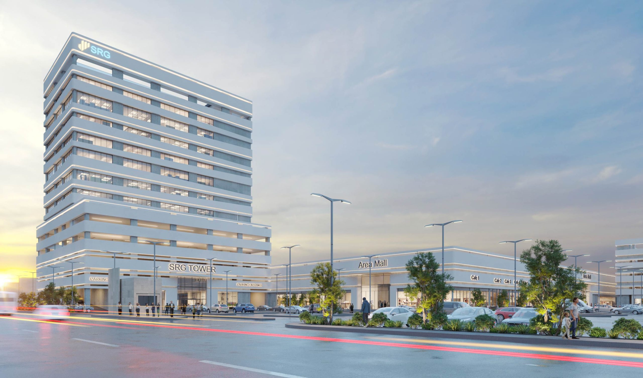 The project also incorporates structured parking solutions to improve accessibility and traffic flow, along with modern office space integration that allows for efficient space planning and functional workplace environments suitable for a wide range of commercial uses.